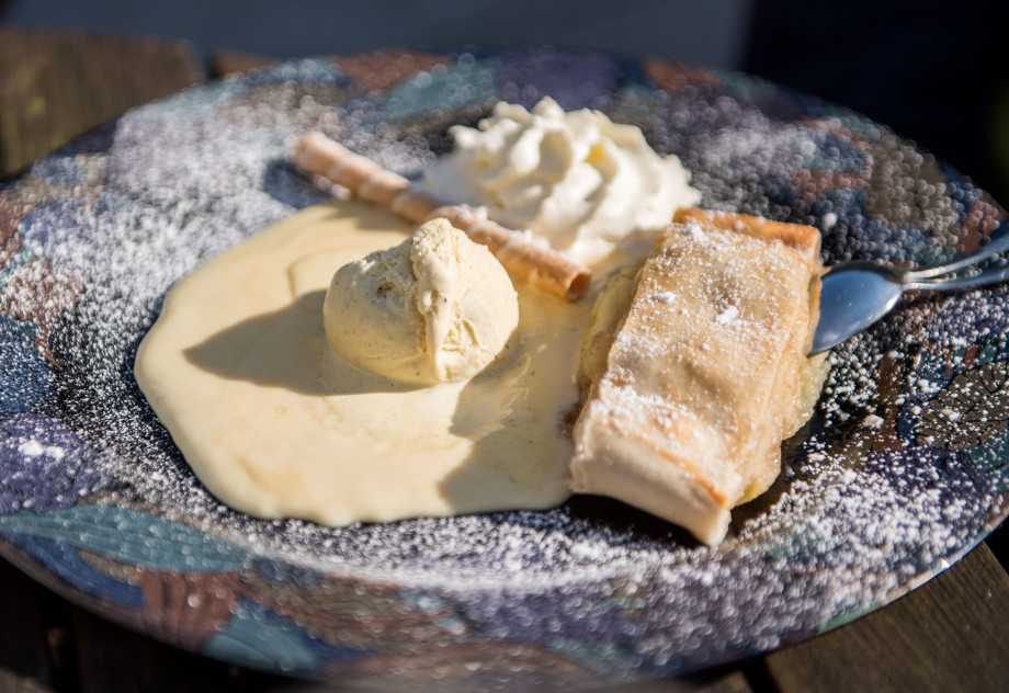 Apfelstrudel в Австрии – это национальное лакомство. Рулет из тонкого теста с яблоками и корицей, посыпанный сахарной пудрой, иногда с орешками или изюмом прекрасно сочетается с шариком ванильного мороженого. В этом случае штрудель нужно подавать еще горячим, и лакомиться им сразу, пока он сам не остыл, а мороженое не растаяло.