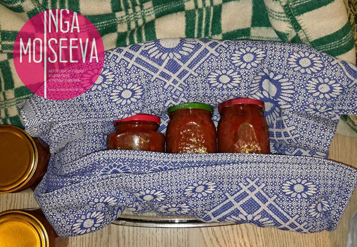 - Перевернем дном вверх. Укутываем чем-нибудь тепленьким и оставляем, пока консервация остынет.