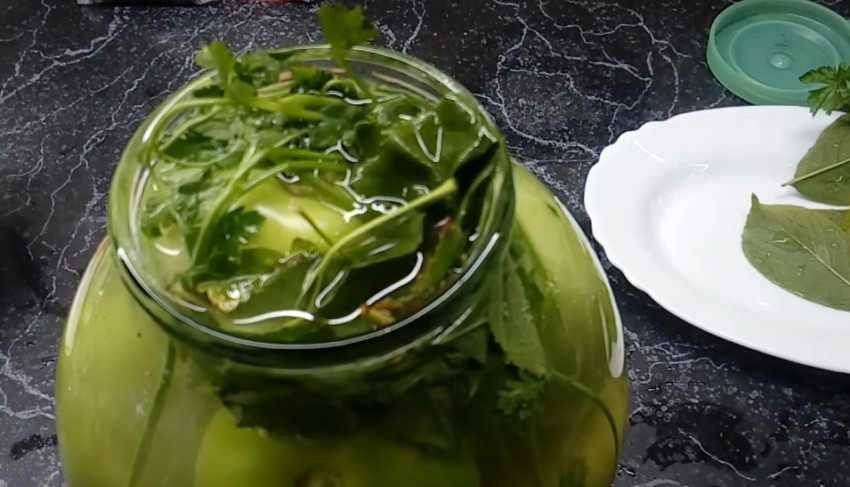 Заготовка в банках из зеленых помидоров с петрушкой по-армянски