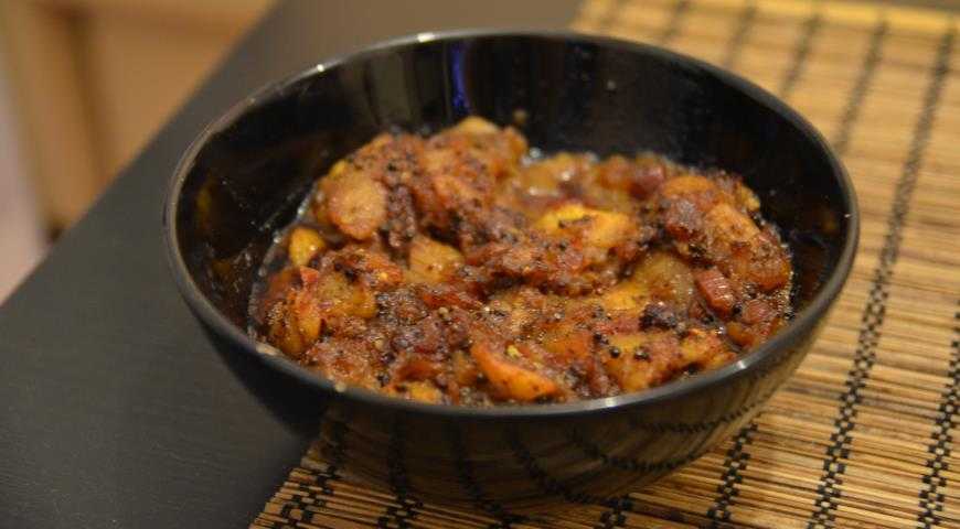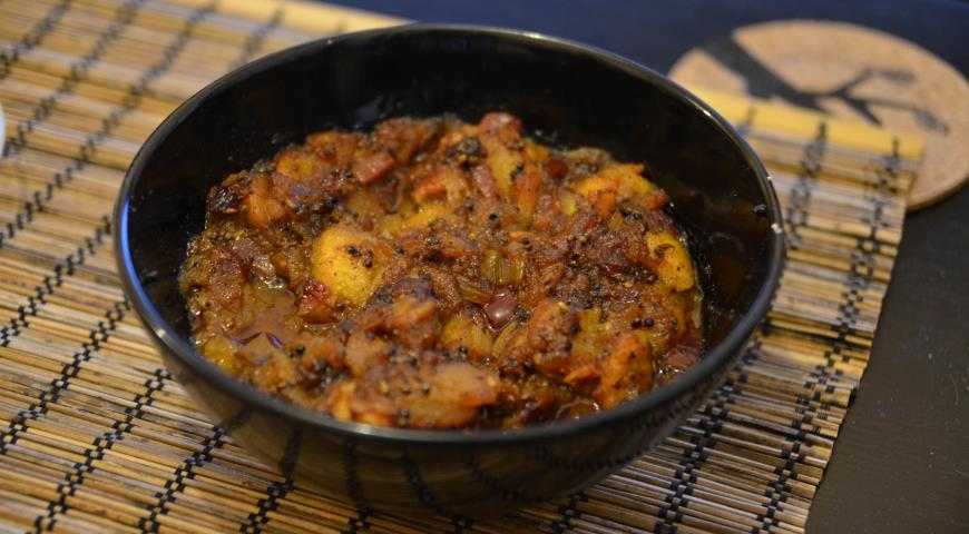 И совершенно неважно, приготовлен чатни из фруктов, овощей или из ягод — он обязательно однородный и густой, как варенье, содержит большое количество специй и приправ. В разных рецептах в соус добавляют перец чили, сухофрукты, чеснок, имбирь, корицу, кардамон и еще пару десятков самых популярных специй, без которых просто немыслима индийская кухня
