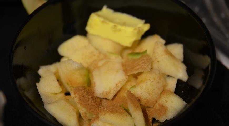 Очищаем яблоки от кожуры, удаляем сердцевину с семенами и перегородками. Режем на мелкие кусочки.