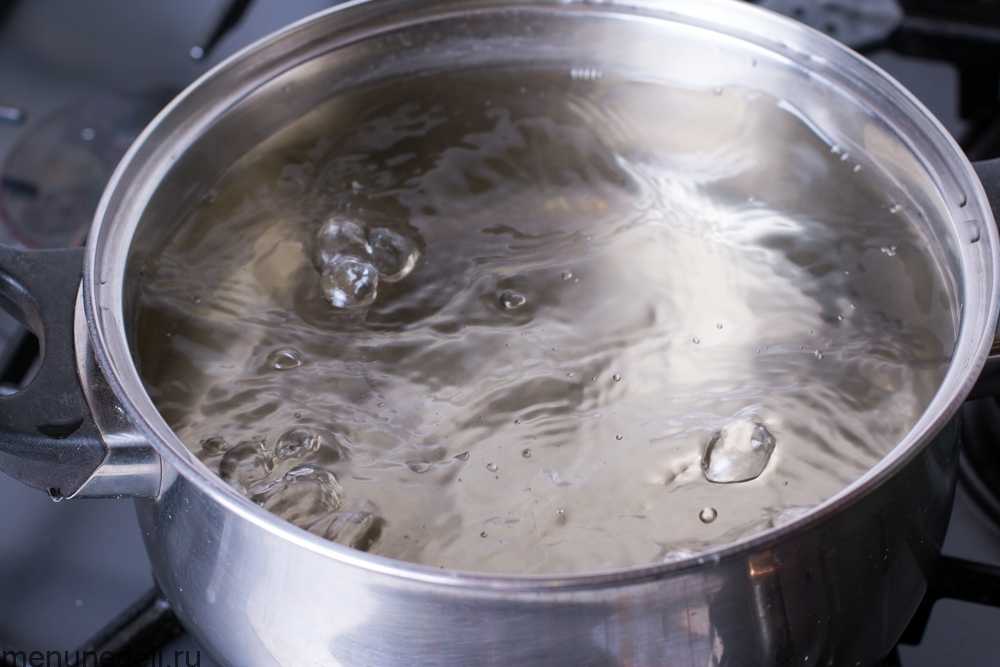 Вскипятить воду в кастрюле. Параллельно подготовить миску с холодной водой, в которую желательно добавить кубики льда.