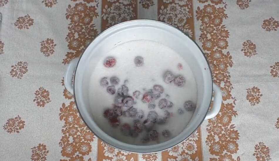 - Укладывают ягоды в эмалированную емкость, пересыпая сахаром, оставляют на 5 часов.