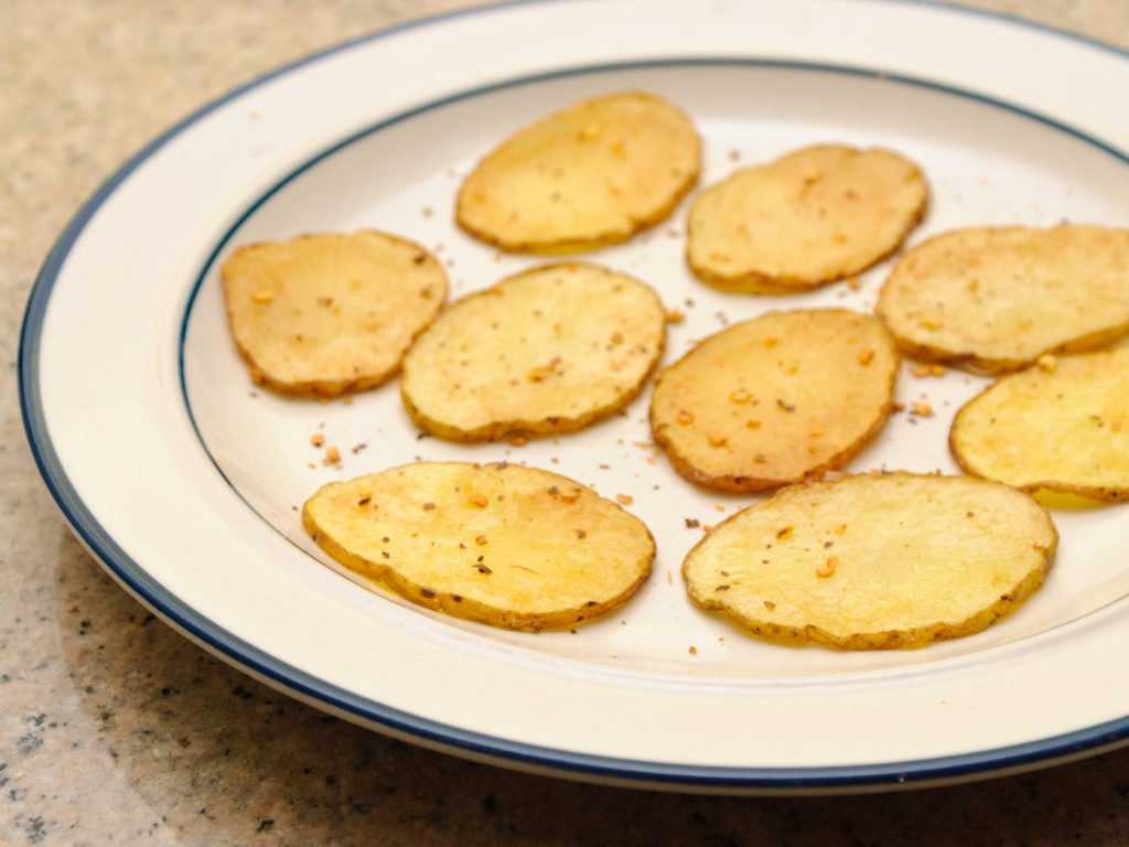 Чипсы считаются готовыми, если на них появляется корочка золотисто-коричневого оттенка. Тогда их следует достать из микроволновки и дать остыть, иначе они просто сгорят.