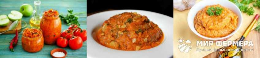 Рецепт блюда с томатной пастой отличается от предыдущего тем, что в него обычно включают гораздо больше специй и зелени. В результате заготовка получается очень вкусной и ароматной, а томат придает ей насыщенный цвет.