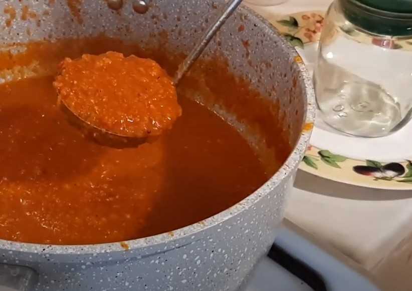 Приготовление кабачковой аджики с томатной пастой проводится так: