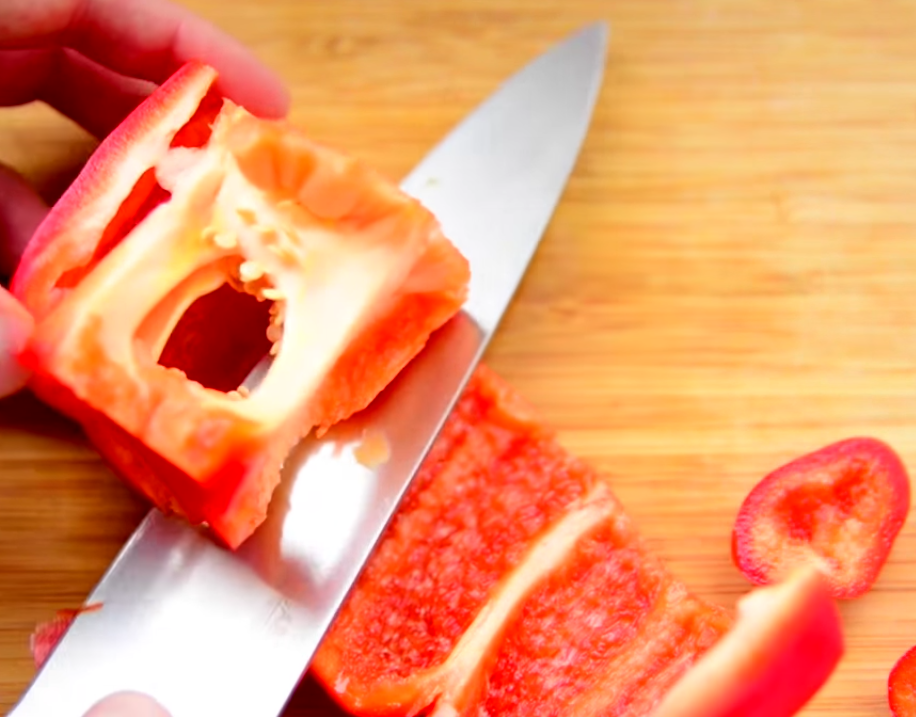 3. С болгарского перца тоже нужно снять кожицу, но способ с кипятком здесь не подойдет.