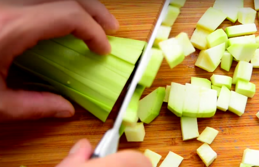 2. Через 7-10 минут добавить нарезанный кубиками кабачок.