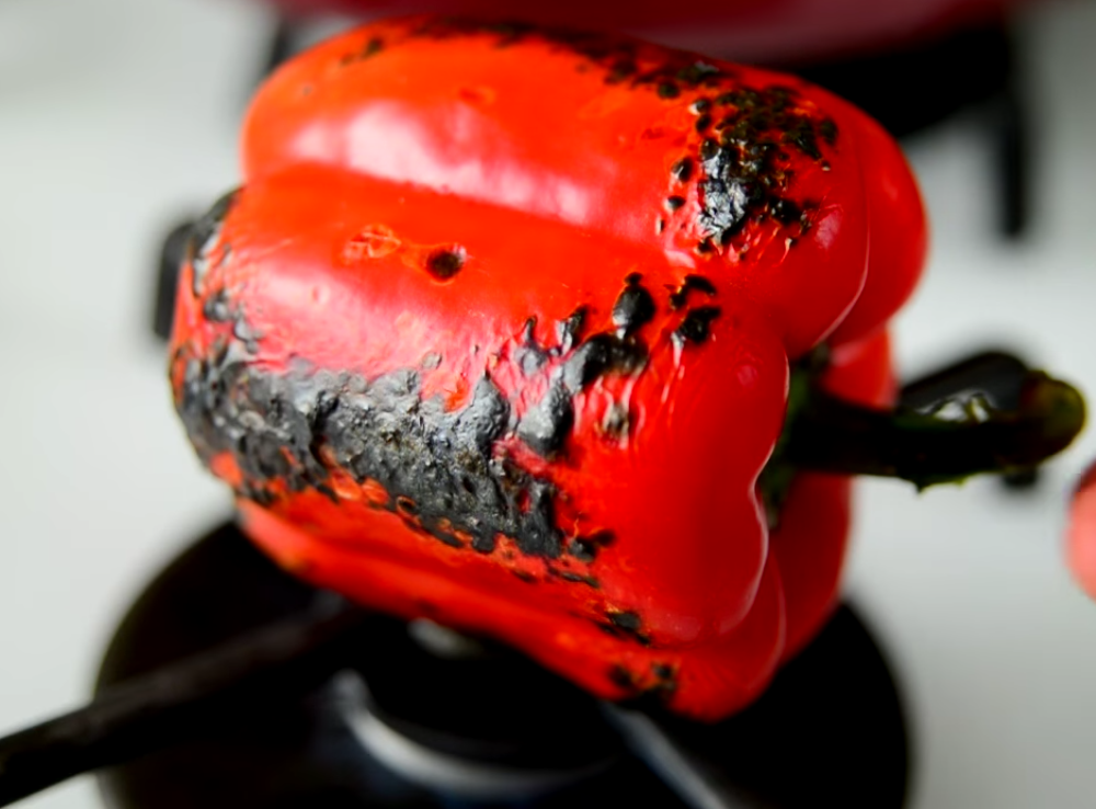 - Обжечь перец на огне или прямо на газовой конфорке до черна, и соскоблить кожицу ножом.