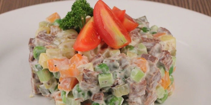 Это еще одна разновидность блюда, которую смело можно назвать классической. О том, как сделать салат Оливье с говядиной, должна знать каждая хозяйка, ведь он получается просто потрясающим на вкус. Смотрится блюдо очень аппетитно даже на фото, а в реальности от него невозможно оторвать глаз. Попробуйте сделать такой салат. Вы убедитесь, что он не зря пользуется популярностью уже много лет.