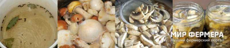 - Готовые грибы распределить по банкам, залить маринадом, прикрыть крышками.