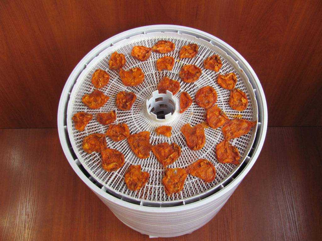 Можно засушить урожай впрок. Для этого отбирают крупные, но не слишком сочные плоды. Надо учесть, что при сушке вес каждого плода уменьшится примерно в 6 раз. Продукт можно засушить как естественным путем, так и в духовом шкафу или при помощи специальной техники.
