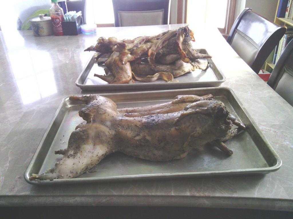 Вне зависимости от того, холодным или горячим методом будет коптиться кролик, его изначально стоит избавить от шкурки и внутренностей, если тушка была куплена не разделанная. Затем тушка тщательно промывается несколько раз под проточной водой. После этого кролик разрезается на четыре части таким образом, чтобы не оставалось ребер.