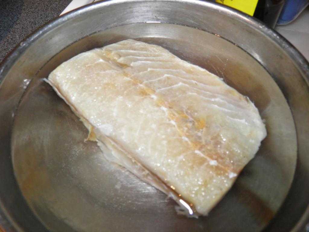 Прежде всего промоем нашу рыбку в холодной воде. Затем положим ее в подходящую тару и зальем холодной водой. Во время процесса лучше, если посуда с рыбкой будет находиться в холодильнике. Менять воду на свежую необходимо каждые два часа. Не пренебрегайте этим небольшим правилом, тогда и рыбка будет иметь более приятный вкус. Соленая рыба очень тяжелая, по этой причине она сначала будет находиться на дне посуды с холодной жидкостью. Спустя некоторое время, когда из нее начнет выходить соль, рыбка полегчает и уже устремится на поверхность. Когда вымачиваемая рыба всплывет, значит процесс прошел удачно.