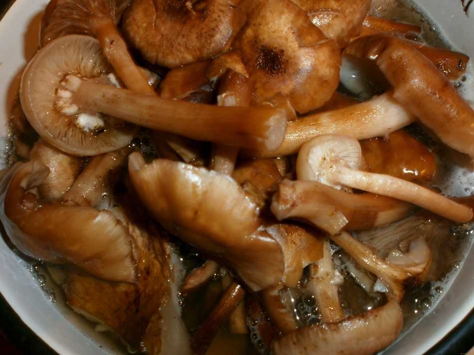 - Из 2 л воды,100 соли и 4 г лимонной кислоты варят рассол и отваривают в нем грибы до опускания их на дно.