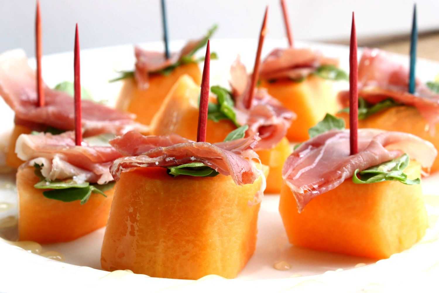 Гости будут удивлены сочетанием вкуса ветчины и дыни.
