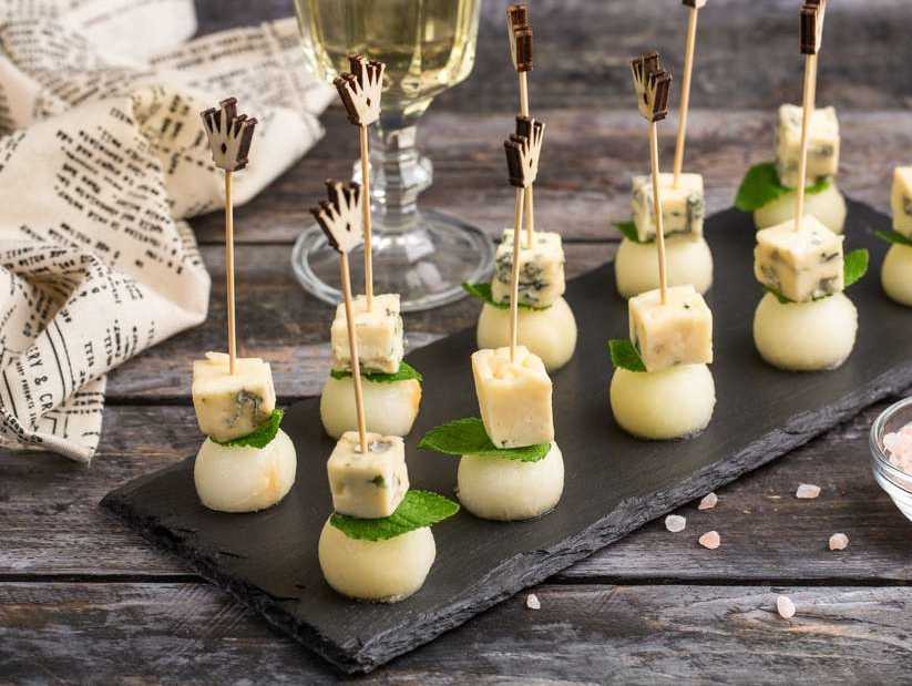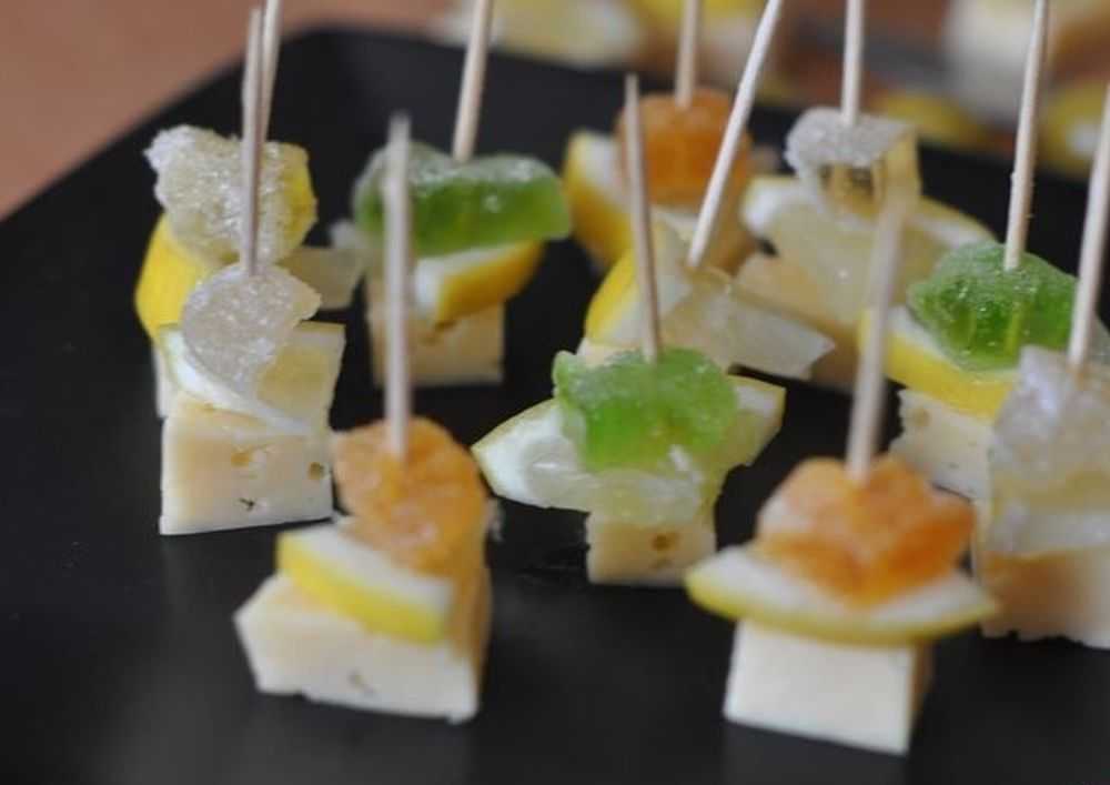 Канапе украсят и праздничный Новогодний стол. Какой Новый год без шампанского?! А вот к этому шипучему напитку подойдут канапе с мармеладом, лимоном и сыром.