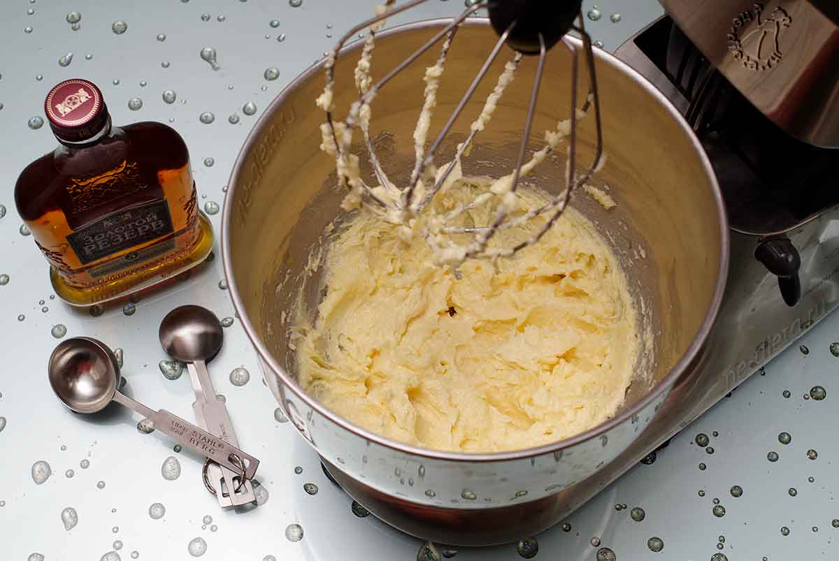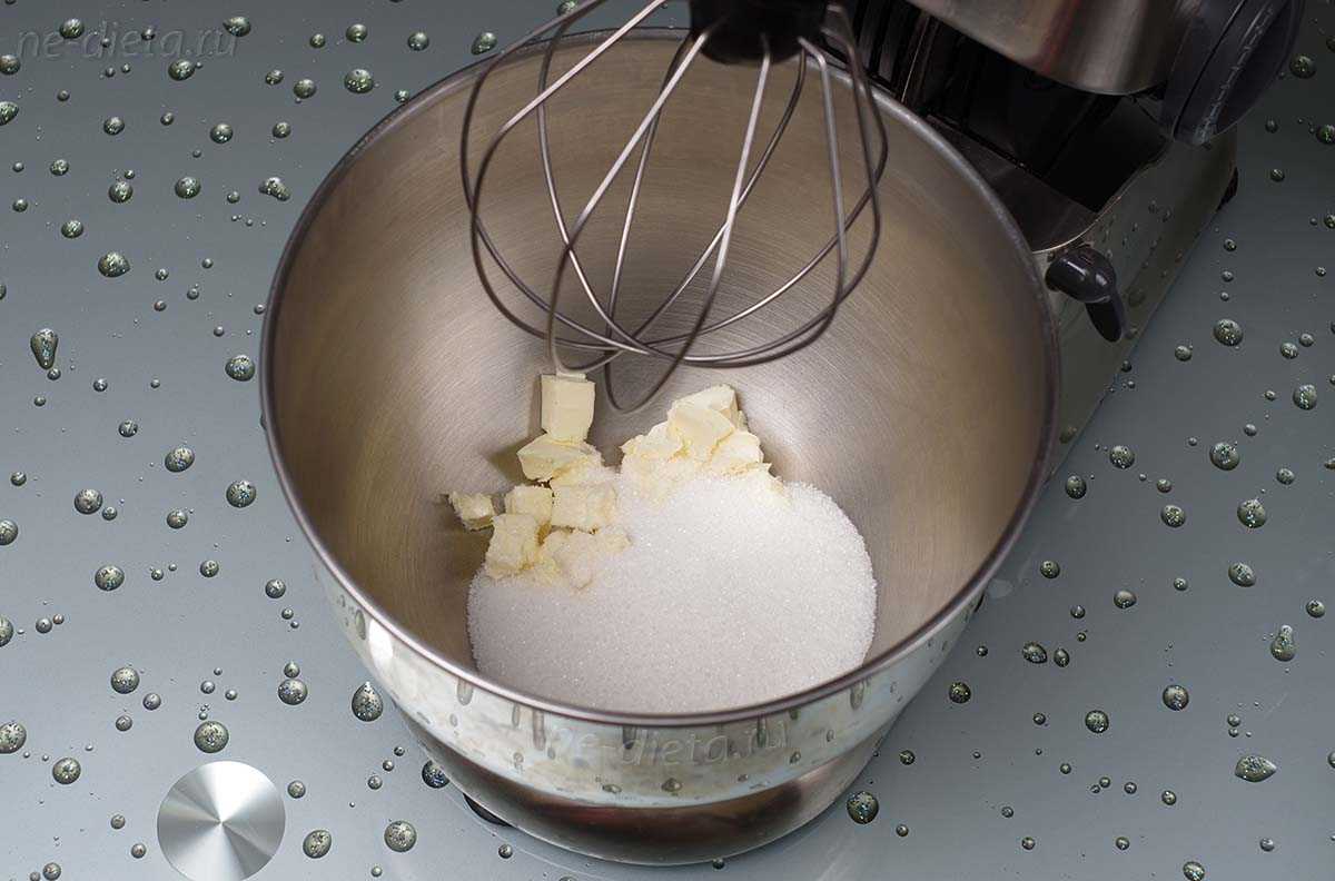 2. Хорошо взбить масло с сахаром на высокой скорости миксера или комбайна, чтобы сахар растворился и перестал «хрустеть» в масле.