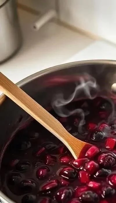 - Варка: Переложите ягоды с сахаром в кастрюлю с толстым дном. Поставьте на средний огонь. С момента закипания варите около 40 минут, постоянно помешивая и снимая пенку. Этот процесс обеспечит густоту и насыщенность.