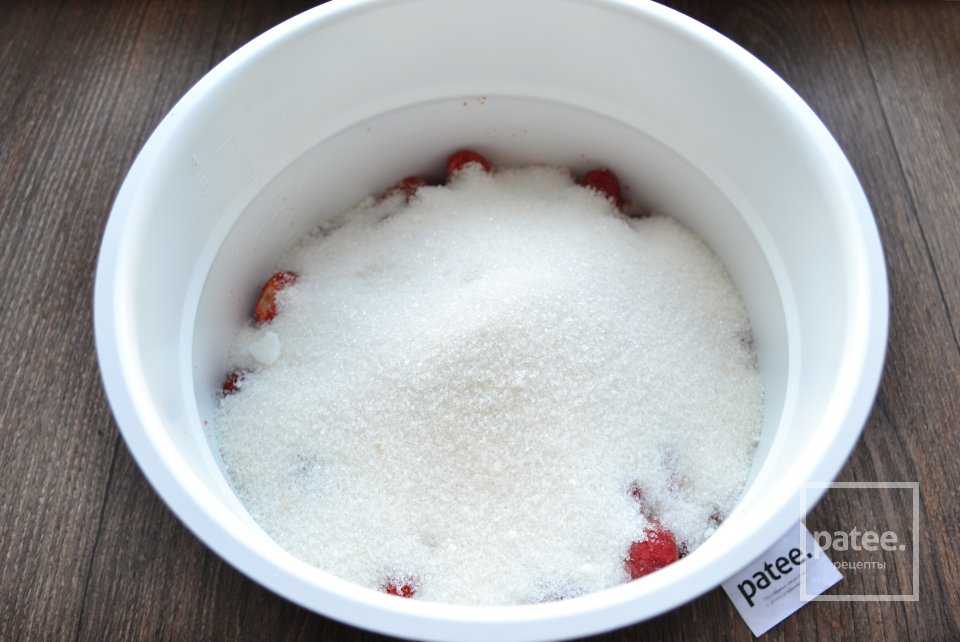 Важно дождаться того, чтобы земляника пустила сок и сахар постепенно начал растворяться.