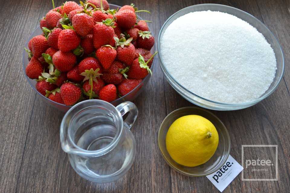 Для приготовления клубничного варенья вам нужно взять свежую клубнику, сахар, воду и лимонный сок.
