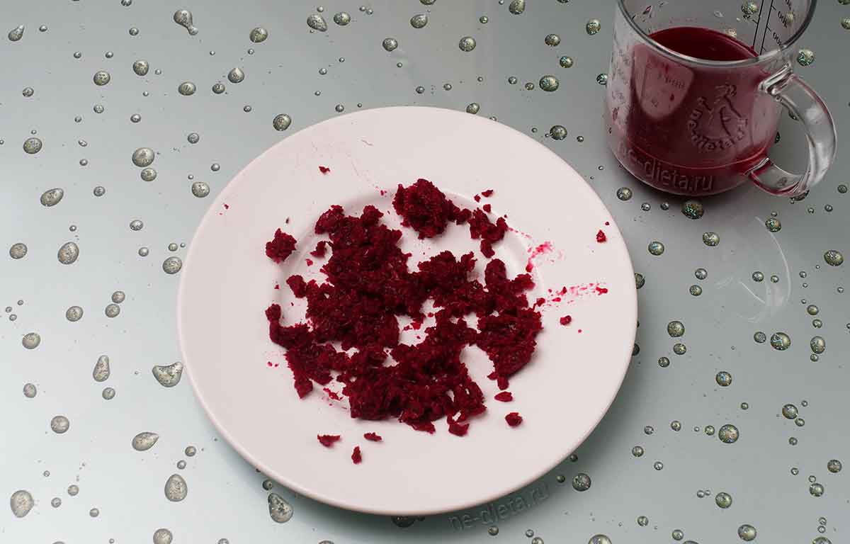 - Отжимание сока. Этот этап осуществляется с использованием мелкого ситечка или марли, сок нужно выжимать очень старательно;