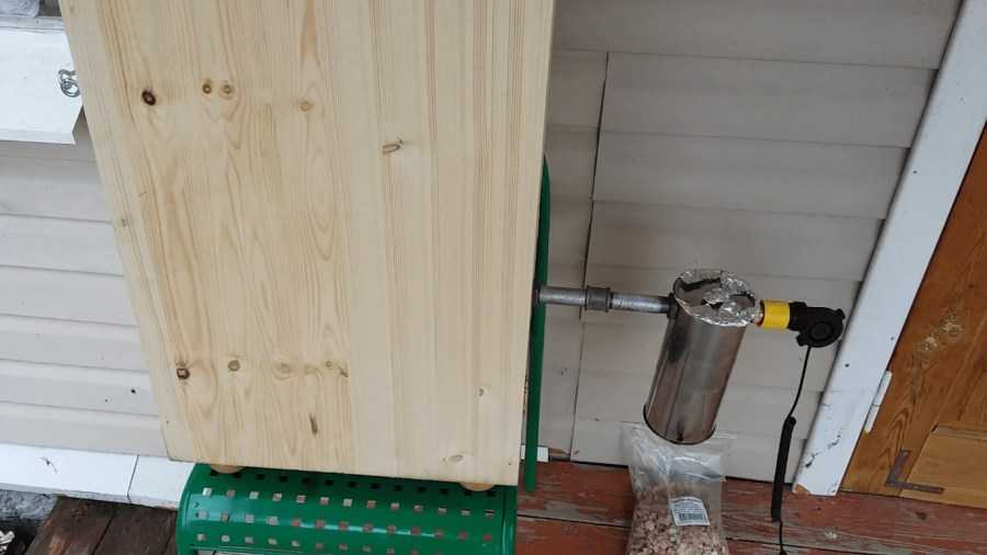 После того, как появится дым, коптильня подключается к коптильной камере с помощью гофрированного шланга.