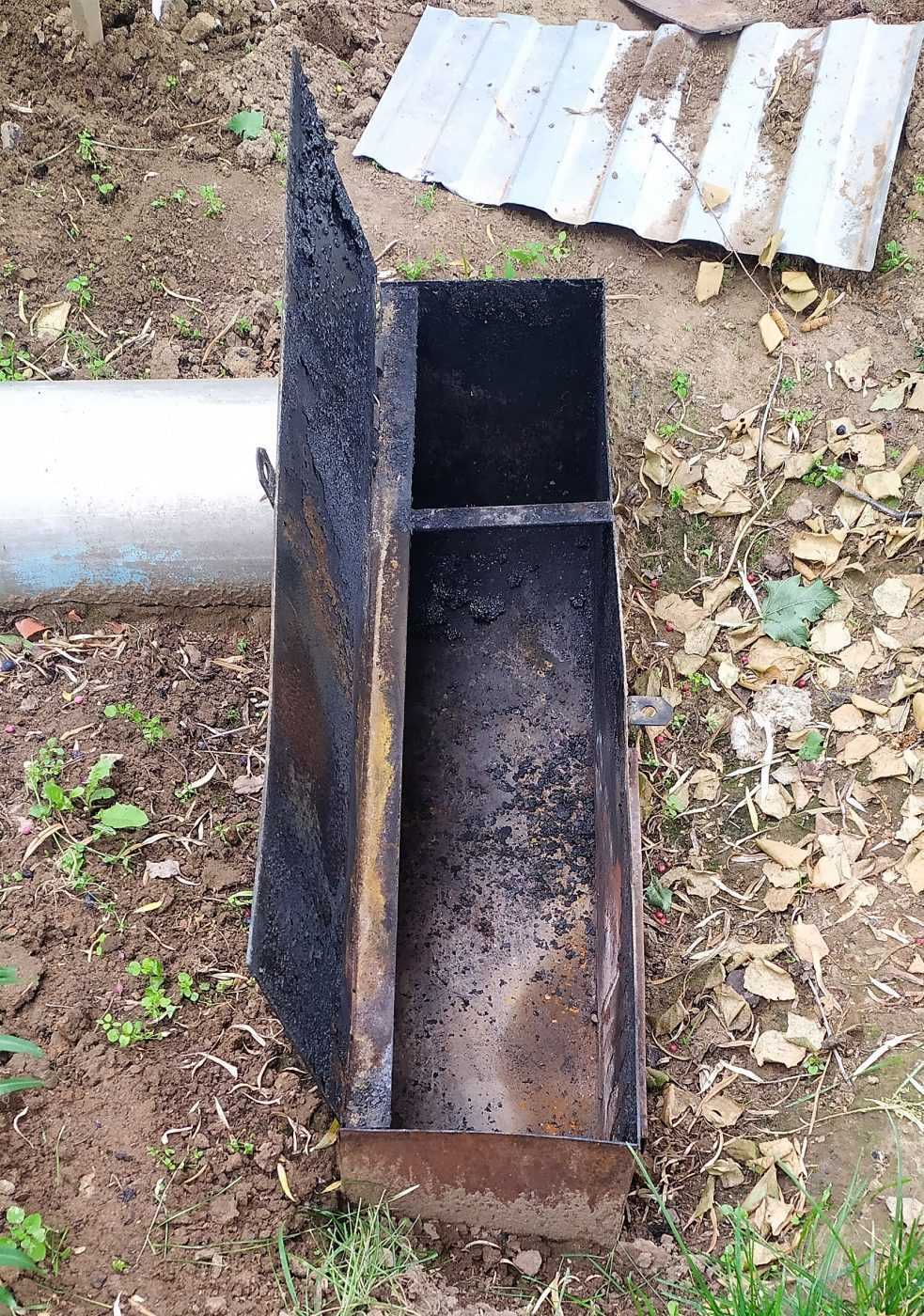 Технология построения дымового канала в земле предполагает рытье неглубокой траншеи, ведущей от ямы для костра до коптильной камеры. Преимущество такого варианта – в отсутствии генерирующей дым камеры, он образуется непосредственно от костра, вернее, от его тлеющих остатков. Для этого выкапывается яма квадратных размеров величиной в штык лопаты, закладываются дрова, и когда они прогорят, она закрывается металлическим листом, а дым от тлеющей щепы через дымовой канал направляется к коптильной камере. Такой же принцип работы коптильни холодного копчения используется и в аппаратах с отдельной камерой-дымогенератором, на дно которой насыпаются опилки, и посудина устанавливается на огонь, будь то костёр или газовая плита
