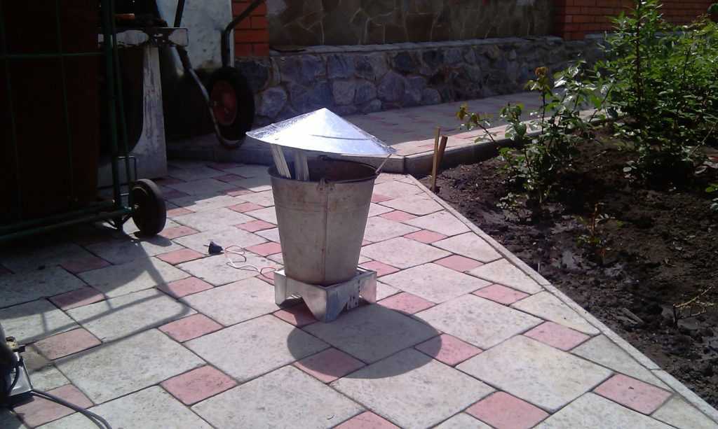 Схематичная конструкция коптильни из ведра