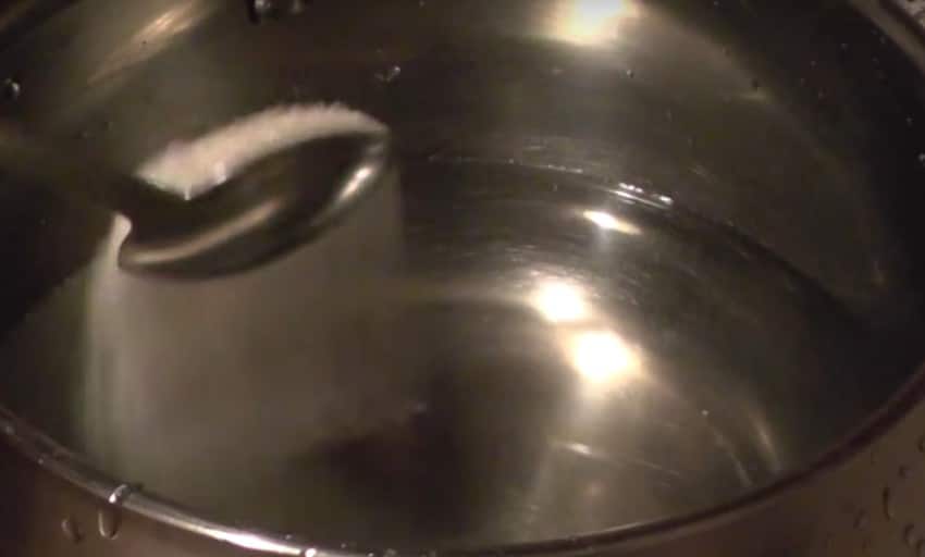 4. В кастрюле смешайте воду, сахар с солью, поставьте на огонь. Как только жидкость закипит, влейте уксус, дайте вскипеть еще раз и снимите с плиты.