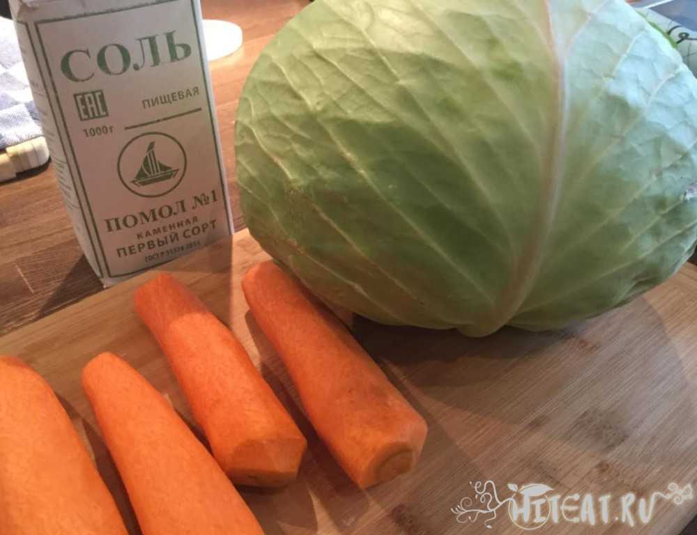 1. В классических вариантах капуста обычно кваситься с небольшим количеством моркови и соли. Что касается сахара, то он не добавлялся. В самой моркови есть натуральные сахара, которые ускоряют процесс брожения. Сахар необходим только тогда когда планируется приготовить большой объём. А если всего один качан, то всё можно сделать проще. В первом шаге ничего сложного, нашинковываем в подходящую посуду.