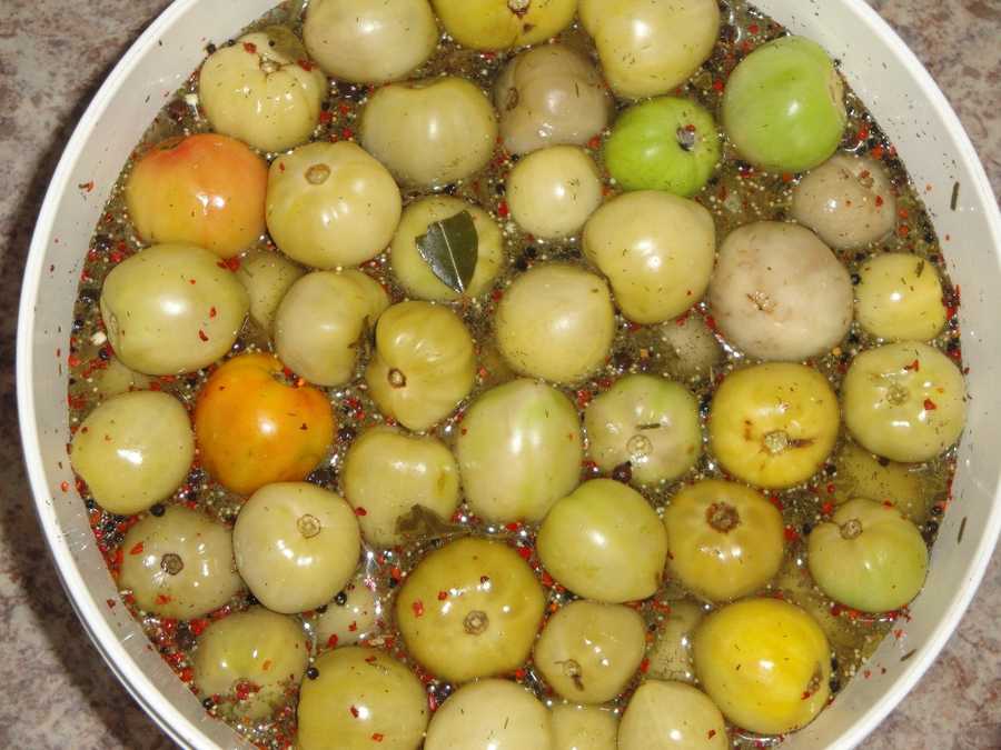 Алгоритм приготовления зеленые помидоров, квашенных в ведре: