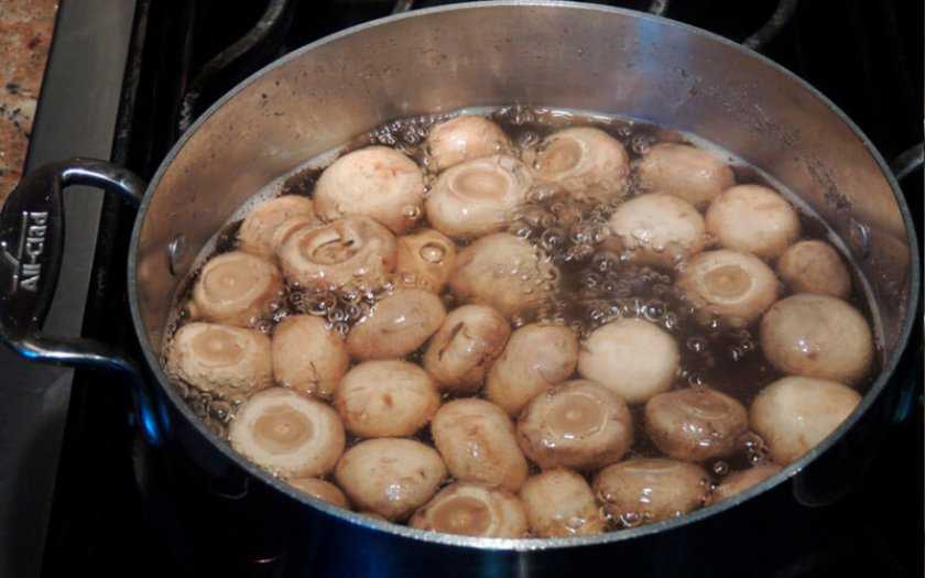 Если будете использовать свежие грибы, то их нужно заранее отварить в чуть подсоленной воде 30-35 минут. Кстати, воду в процессе варки можно поменять, то есть первую воду после закипания слить, далее грибы залить свежим кипятком и продолжить приготовление.