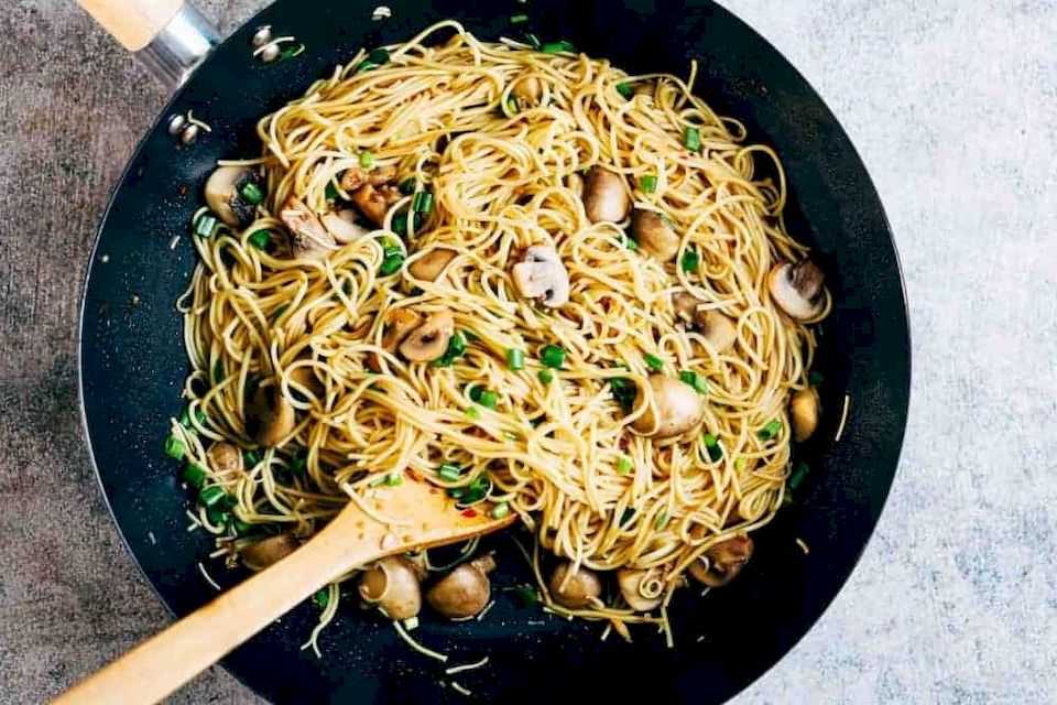 Поэтому важно, чтобы грибы были нарезаны, а лапша отварена, потому что остальное займет у вас всего десять минут