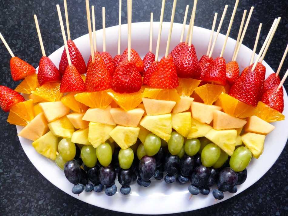 Салат из фруктов на шпажках, вариант нарезки № 8