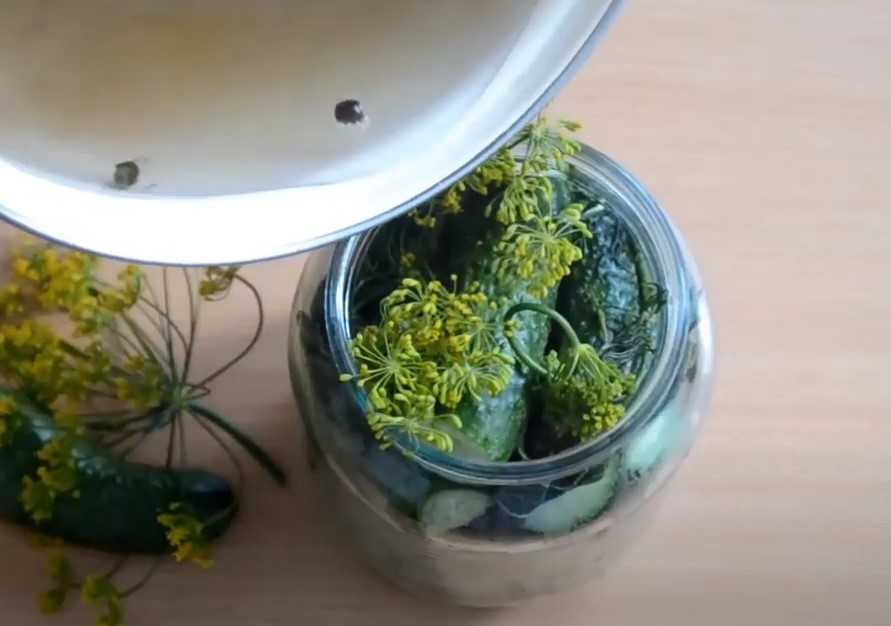 - Залейте кипящим рассолом, всыпьте оставшиеся укропные семена. Накройте крышкой и поставьте на сутки в темное место.