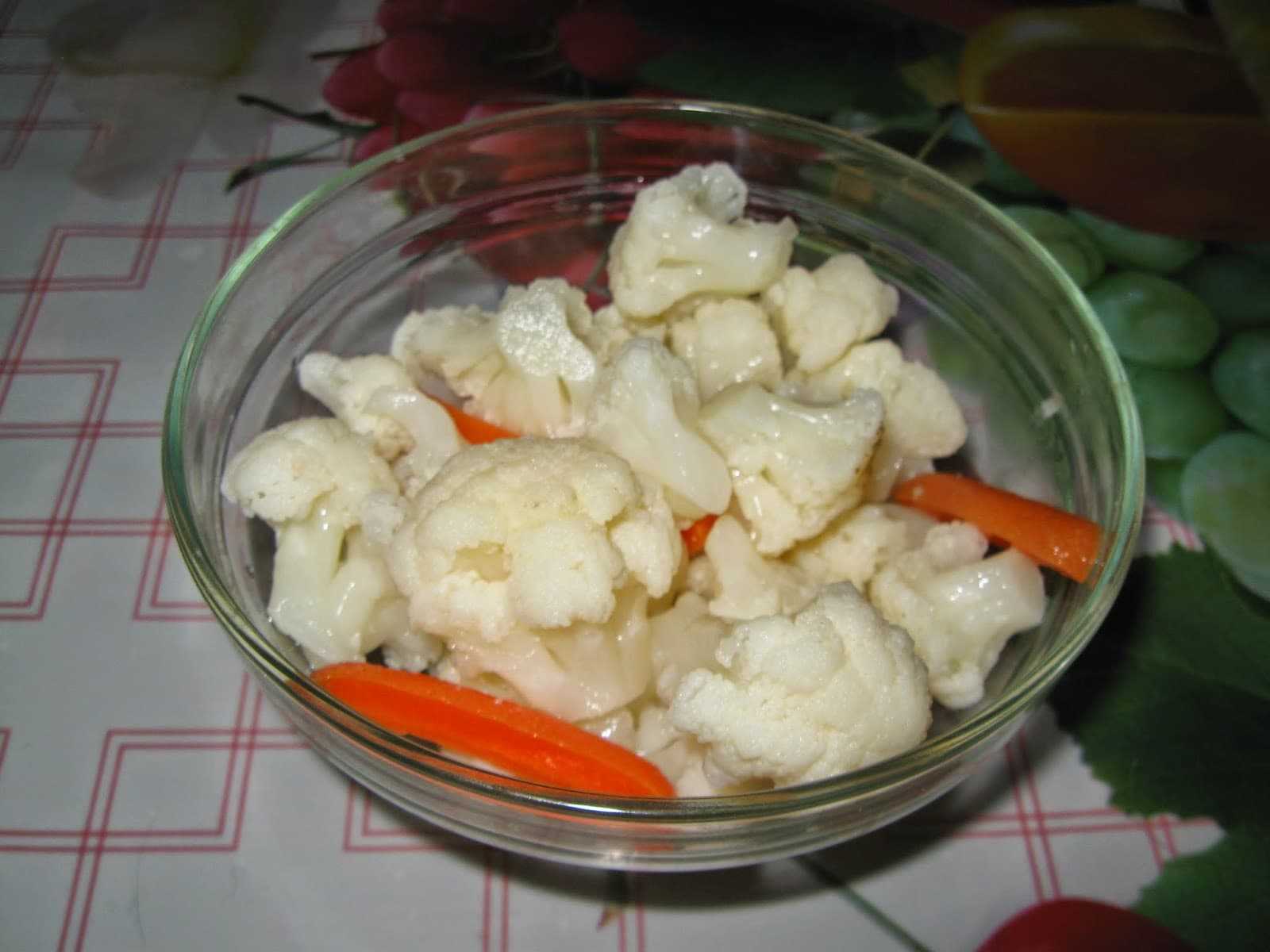 Замариновать воздушную и объемную цветную капусту можно и простым способом в банках, без лишних добавок. В таком виде она подойдет для салатов, пирогов, запекания в духовке и жарки на сковороде. Другими словами, чистый продукт подойдет для разных блюд.