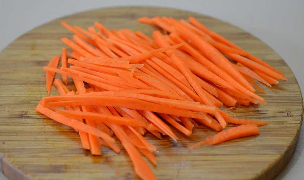 - Разрезать вилок на 4 части и нарезать тонкой соломкой.