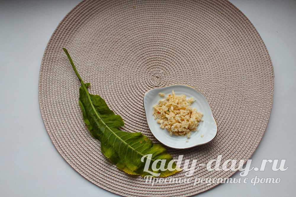 5.Застелите всю поверхность дна капустными листьями, покрывая хлеб.