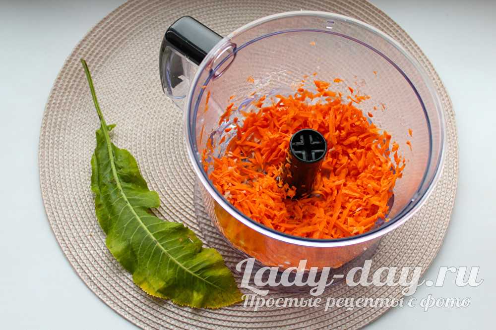 Морковь хорошенько моем и очищаем. Затем натираем на терке или шинкуем в комбайнере.