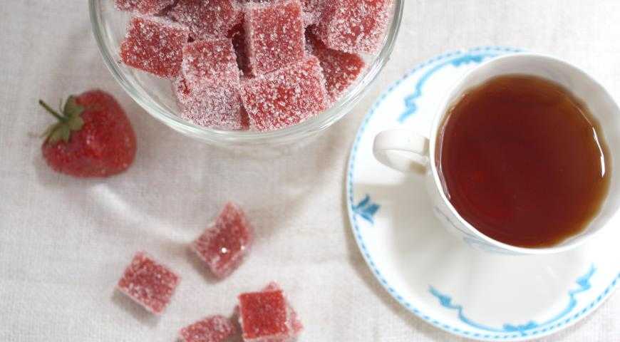 Остывшую до 50 – 60 градусов ягодную массу выкладываем в форму, и даем ей полностью остыть при комнатной температуре. Готовый мармелад извлекаем из формы, нарезаем кусочками и, при желании, обсыпаем сахаром.