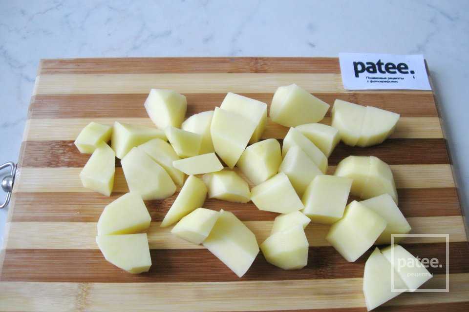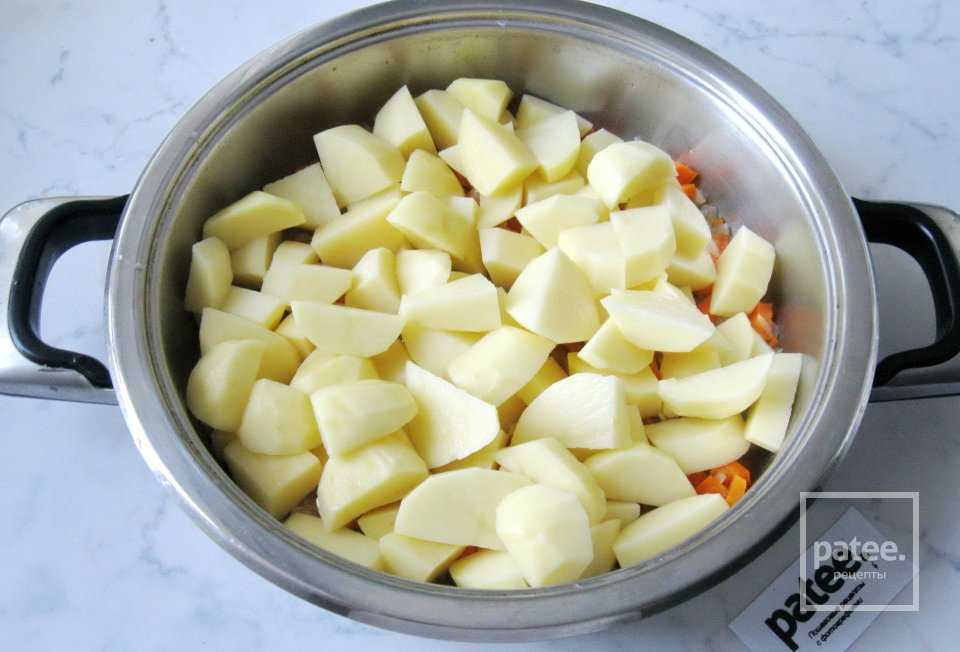 В сотейник с луком и морковью добавляем нарезанный картофель.