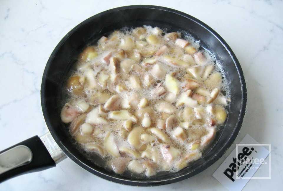 Крупные грибы следует разрезать на части. На следующем этапе рекомендуется проварить на протяжении 25 минут в подсоленной воде с добавлением лимонной кислоты. Обработанный таким образом материал готов к помещению на сковородку или в морозилку.