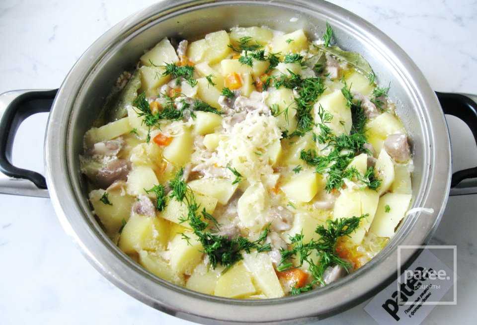 Перед концом всыпать зелень укропа и петрушки, накрыть сотейник крышкой, выключить плиту и дать постоять 5-7 мин.