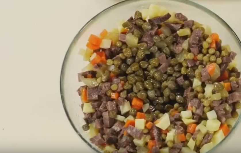 Оливье с говяжьим языком очень вкусный салат на праздничный стол