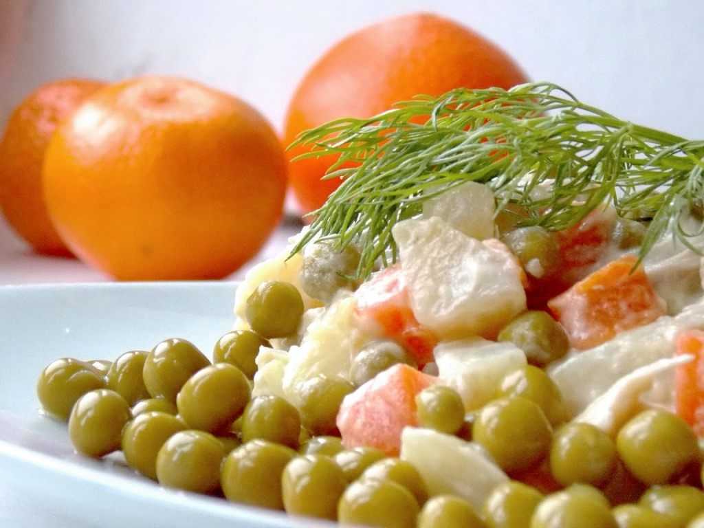 Традиционное — всегда самое лучше. Не зря этому блюду, отдает предпочтение далеко не первое поколение. Со временем, некоторые хозяйки вносят изменения в основной рецепт, делая его более разнообразным и пикантным. Для любителей традиционного Оливье я подготовила такой простой рецепт. Мне он знаком еще с детства и, наверное, никогда не приесться. Ведь он, действительно, очень вкусный и сытный.