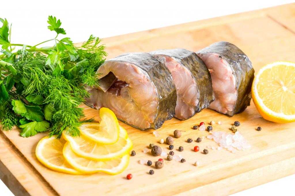 Замороженная не годиться. После очистки и промывки ее разделывают на куски толщиной 5 см. Важно правильно засолить мясо рыбы, для 1 кг надо взять: