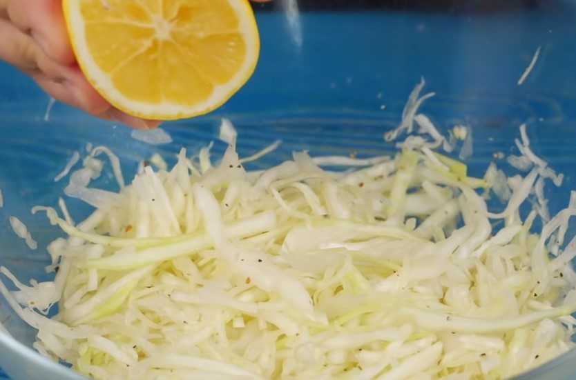 3. Сок половина лимона выдавливаем в капусту и оставляем все это минут на 10.