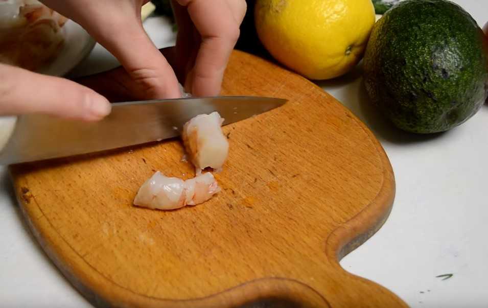 1. Если креветки крупные, тогда можно порезать их на две-три части. Если мелкие — этот шаг пропускаем и идем дальше.