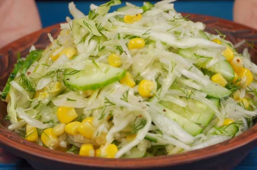 Овощной салат со свежим кабачком, огурцом и сладким перцем